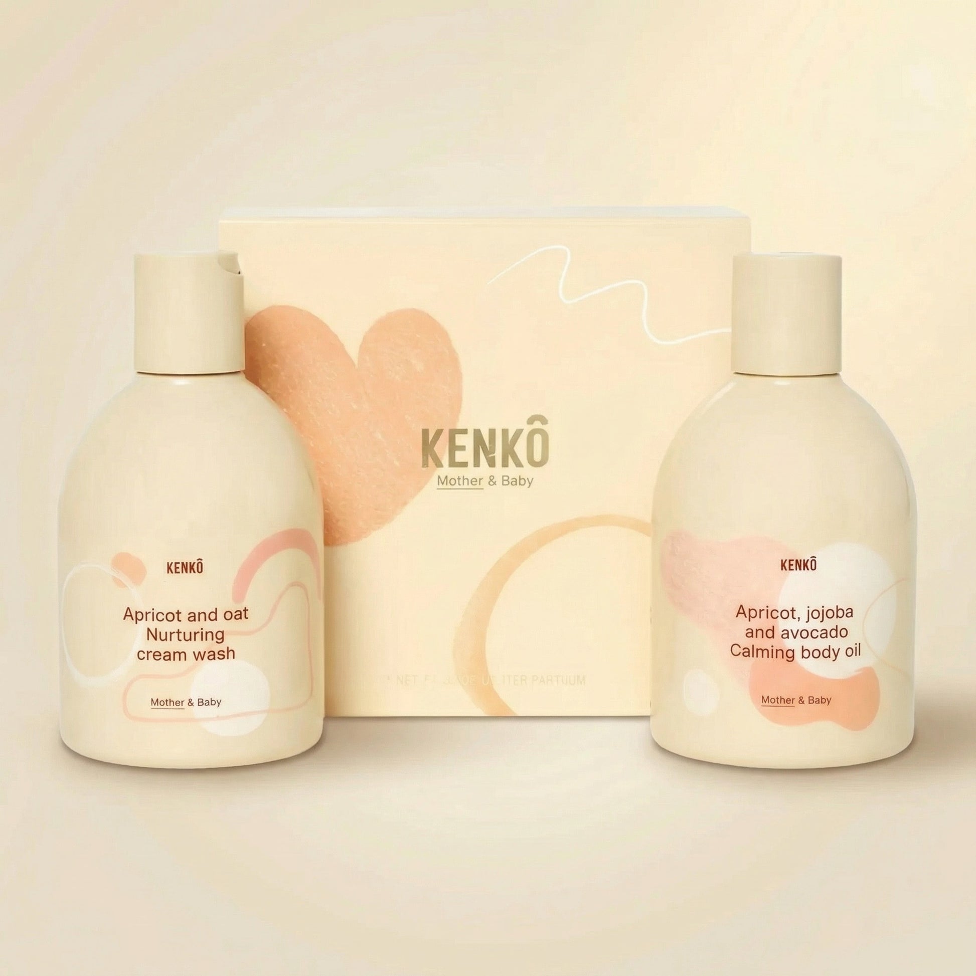 De perfecte cadeaus voor elke (pasgeboren) moeder en kind. Je gebruikt Kenkô samen met je baby(s), vanaf de zwangerschap, en het groeit met moeder en kind mee. Hoewel de producten los verpakt zijn, loopt de bedrukking op de doosjes naadloos in elkaar over. De wikkel om de producten maakt ze één geheel, net als een moeder en haar kind. Maak je keuze uit een van onze luxe sets: